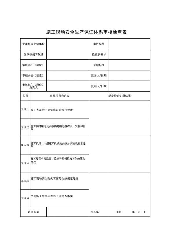 施工现场安全生产保证体系审核检查表7
