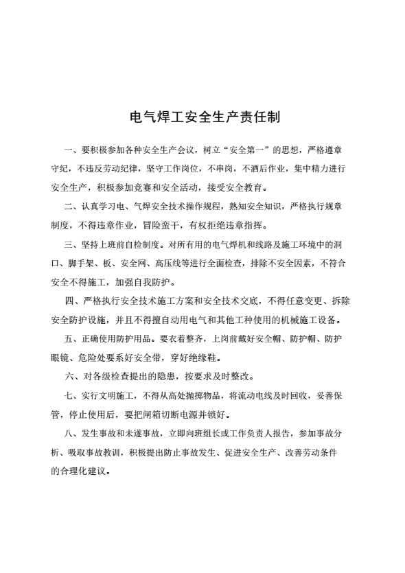 电气焊工安全生产责任制