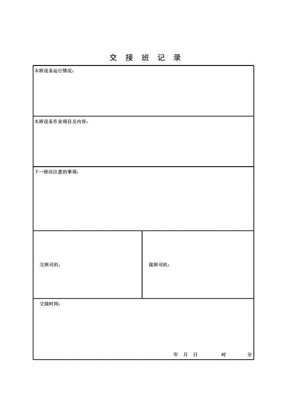 表格名称:交接班记录