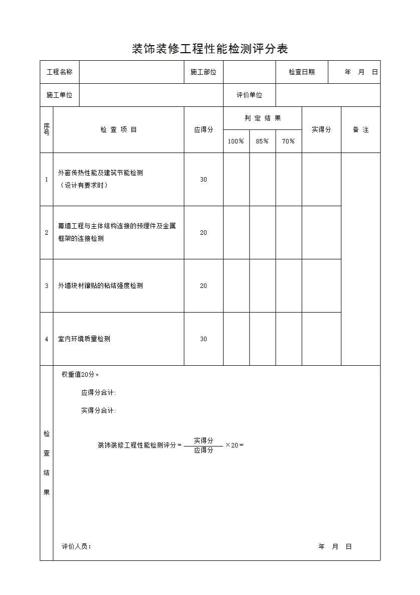 装饰装修工程性能检测评分表