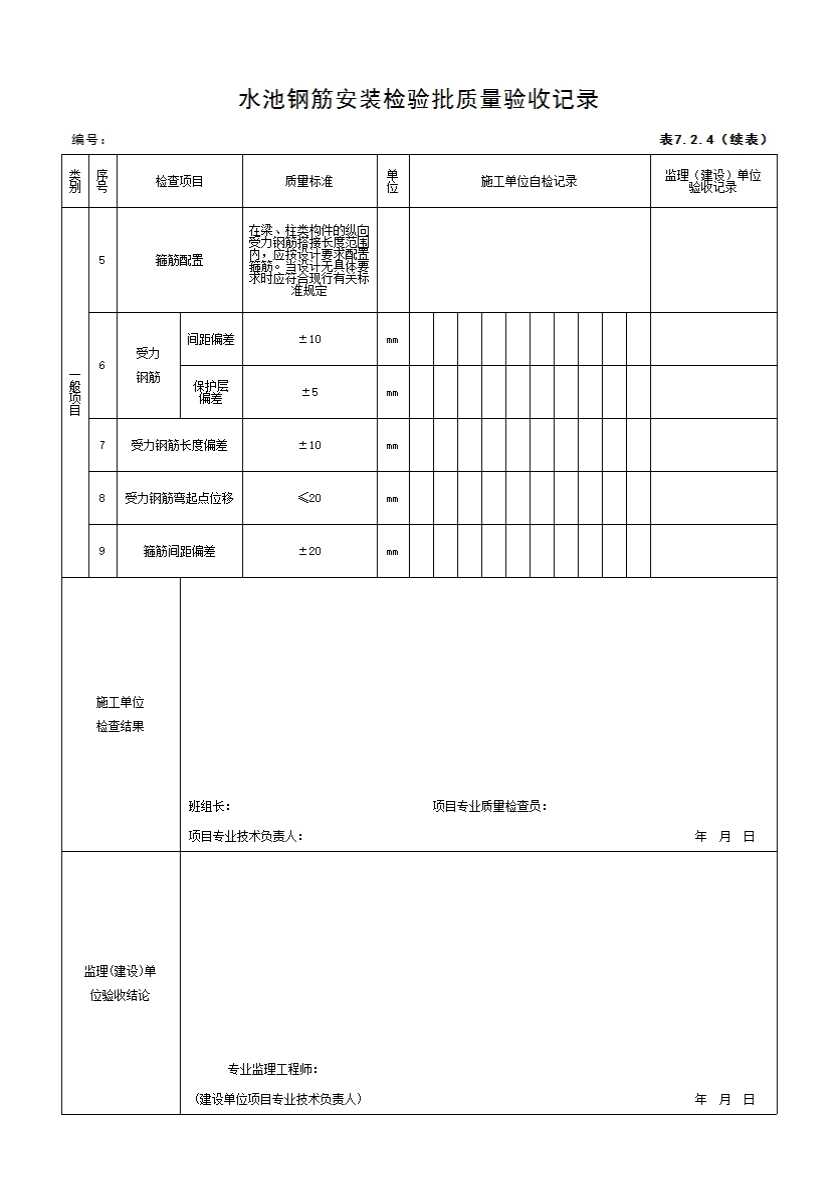 表格名称:7.2.4 水池钢筋安装检验批质量验收记录