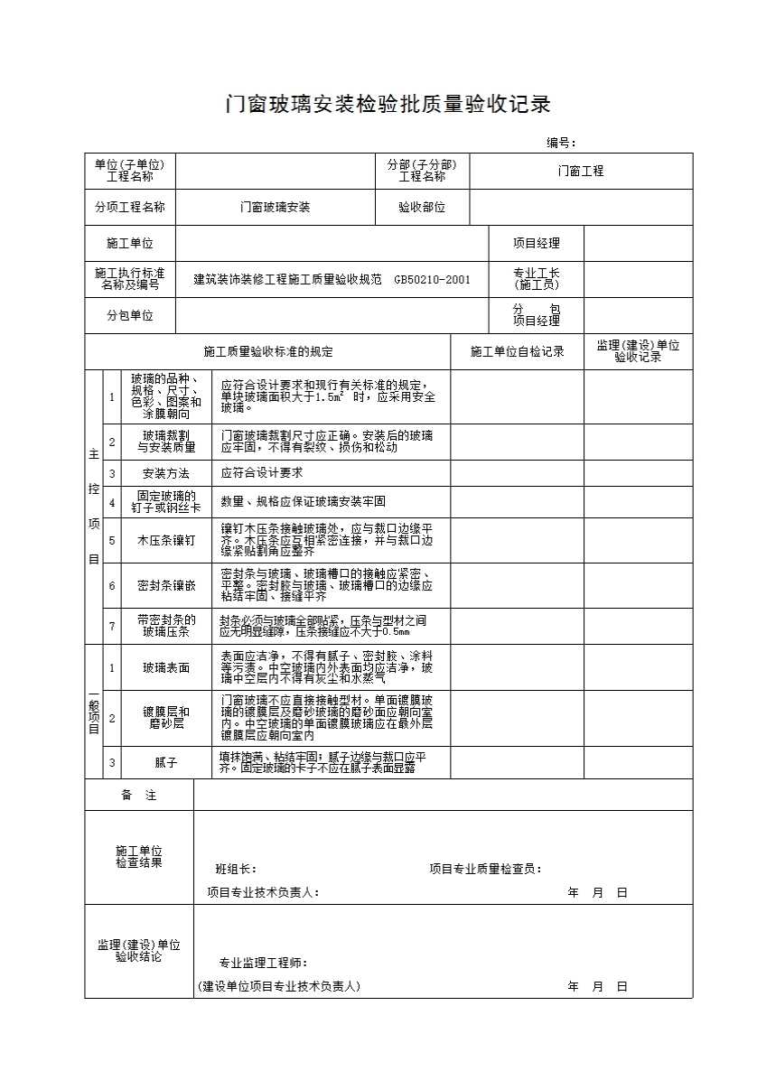 1) 同一品种、 类型和规格的门窗玻璃每层为一个检验批。
