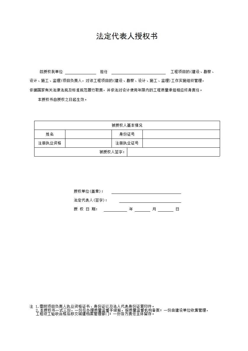 表格名称:JSZ2 法定代表人授权书