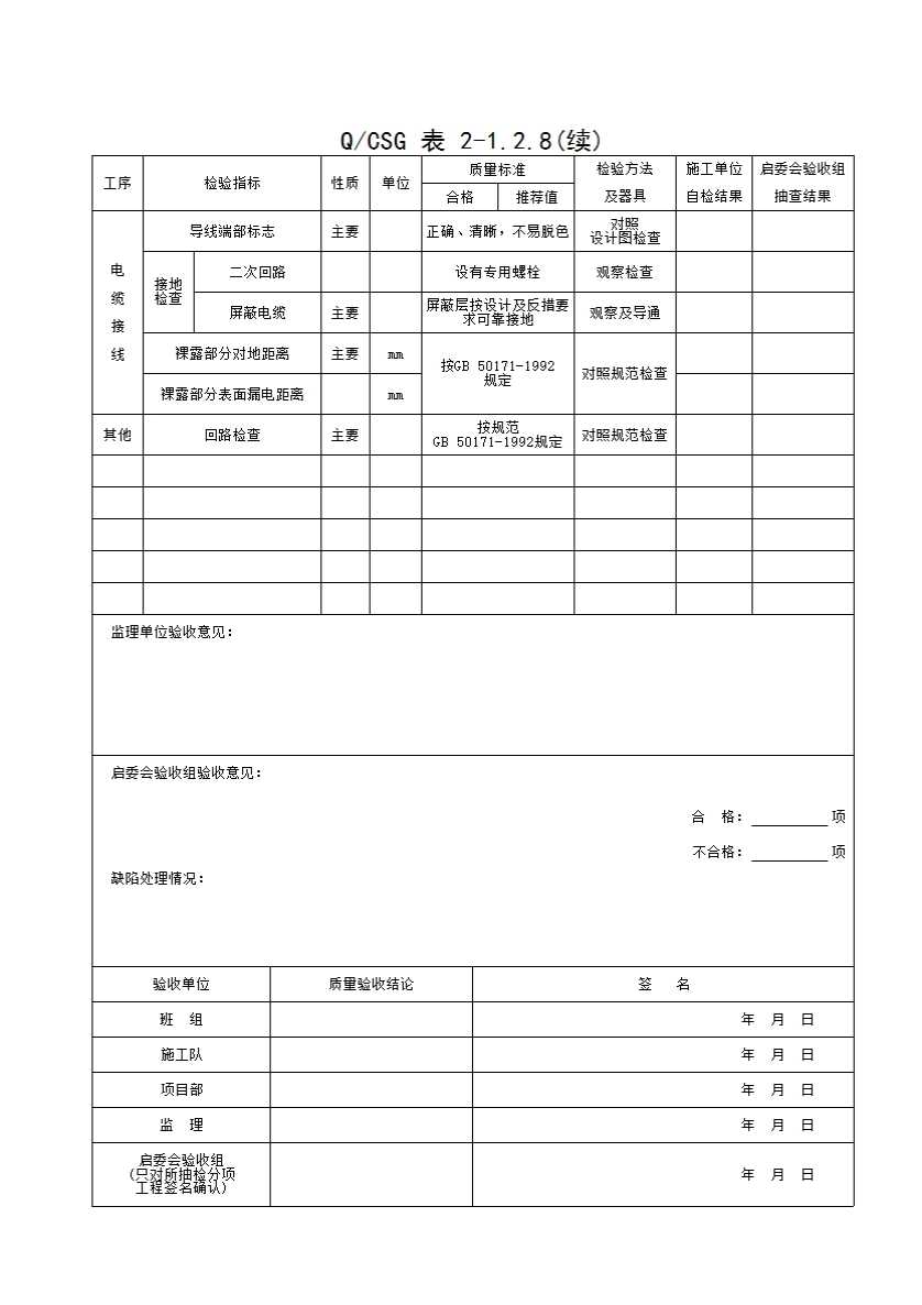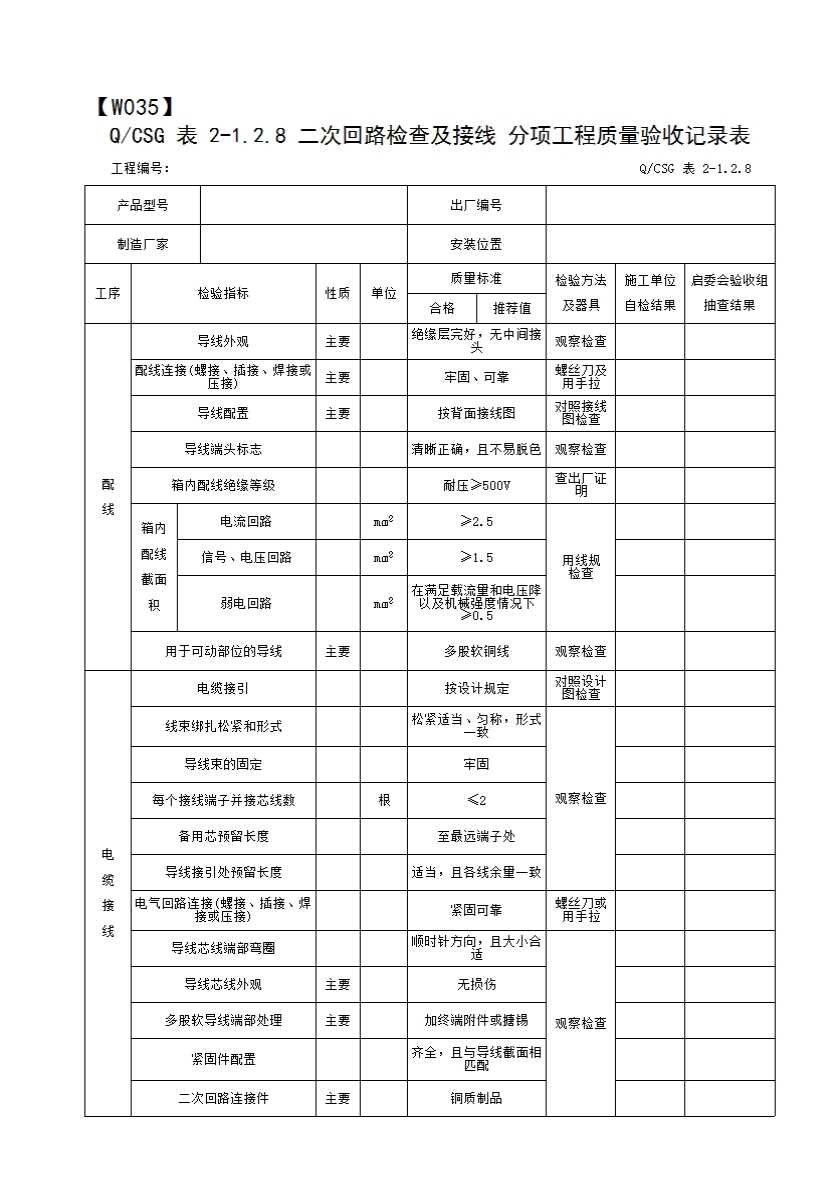 表格名称:QCSG 表 2-1.2.8 二次回路检查及接线 分项工程质量验收记录表