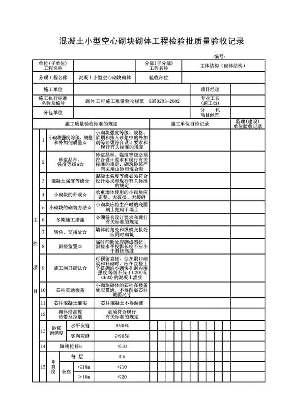 表格名称:混凝土小型空心砌块砌体工程检验批质量验收记录