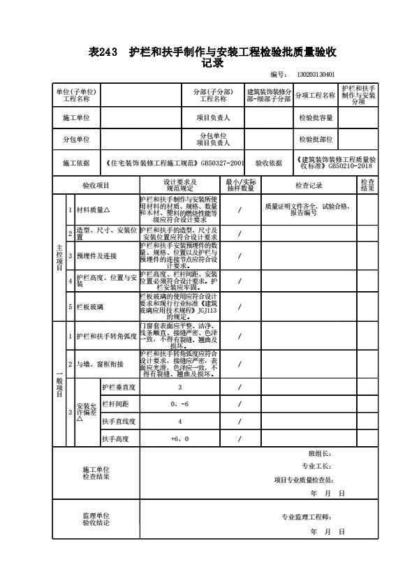 表格名称:130203130401 护栏和扶手制作与安装工程检验批质量验收记录