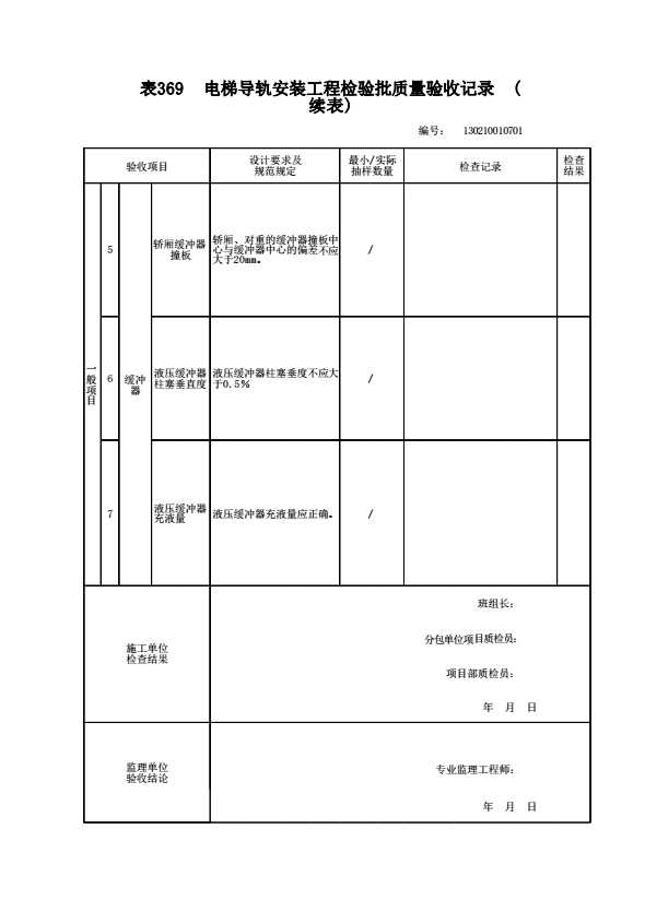 表格名称:130210010701 安全部件(电力驱动电梯)工程检验批质量验收记录