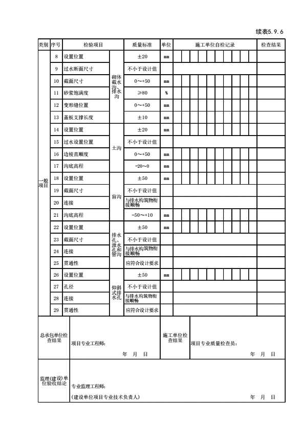 表格名称:表5.9.6 边坡工程排水检验批质量验收记录