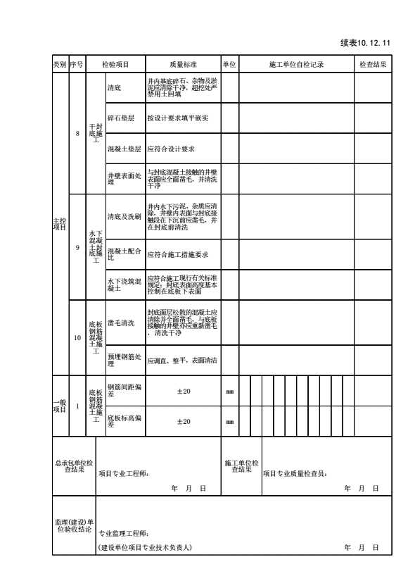 表格名称:表10.12.11沉井封底和底板钢筋混凝土检验批质量验收记录