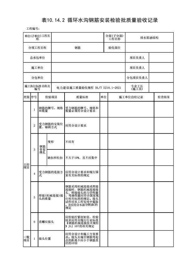表格名称:表10.14.2循环水沟钢筋安装检验批质量验收记录