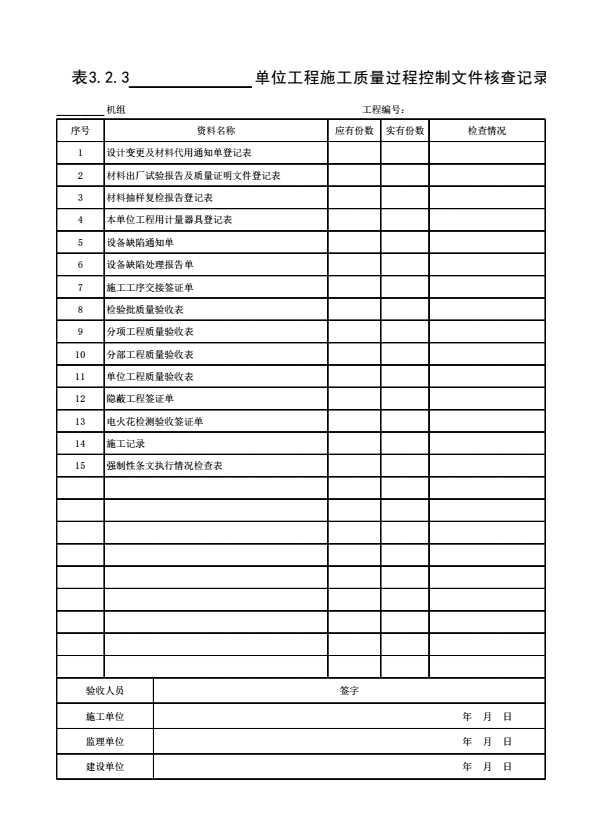 表格名称:表3.2.3 ______单位工程施工质量过程控制文件核查记录