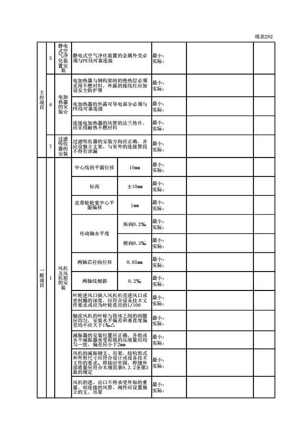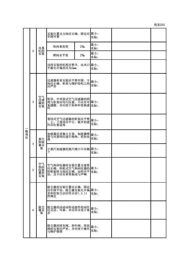 表格名称:010106010401 风机与空气处理设备安装检验批质量验收记录