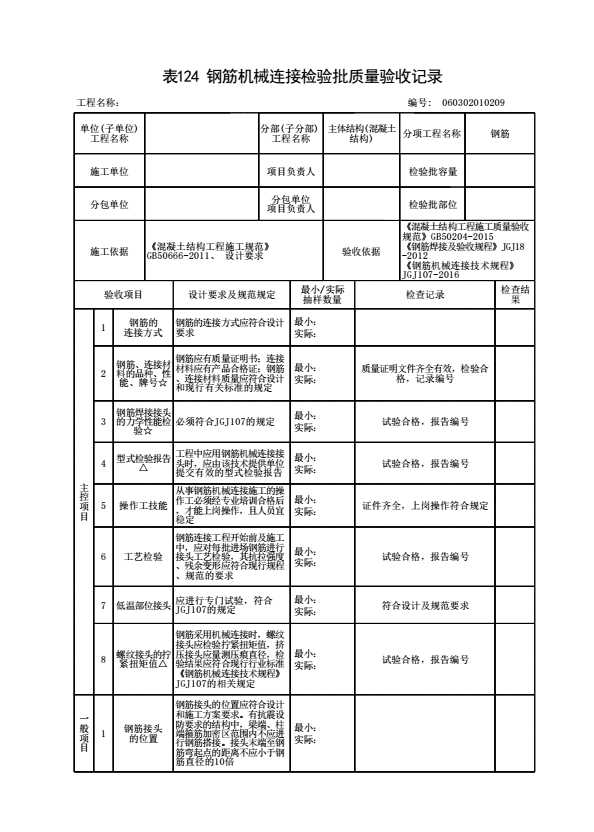 表格名称:060302010209 钢筋机械连接检验批质量验收记录