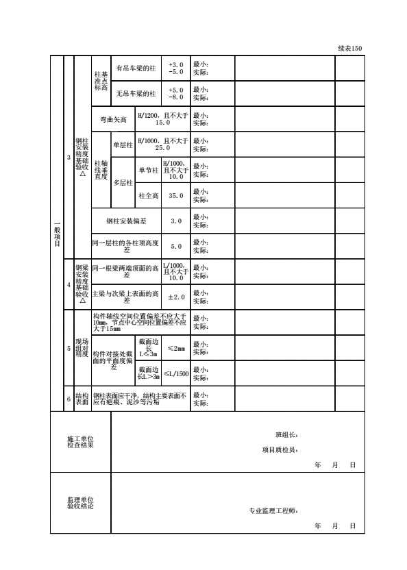 表格名称:140102030601 单层钢结构安装检验批质量验收记录