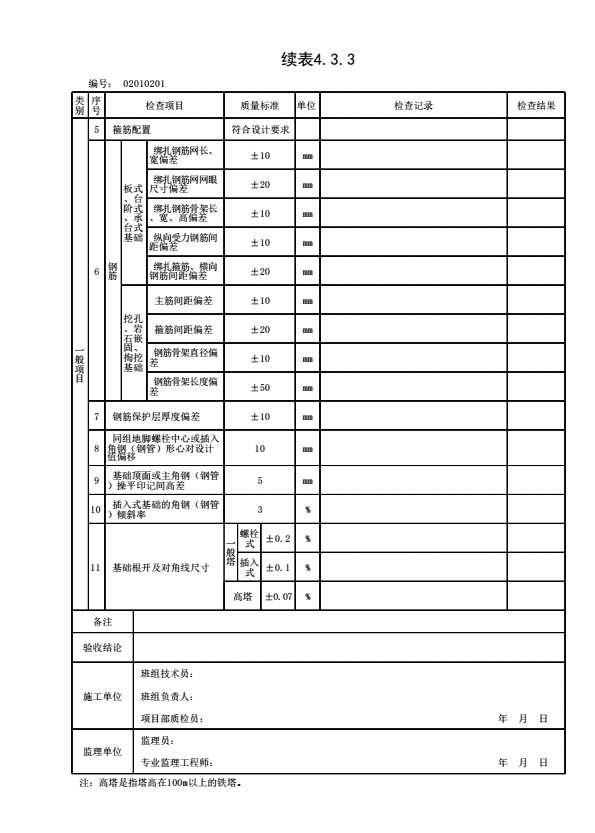 表格名称:表4.3.3 现浇混凝土模板及钢筋检验批质量验收记录