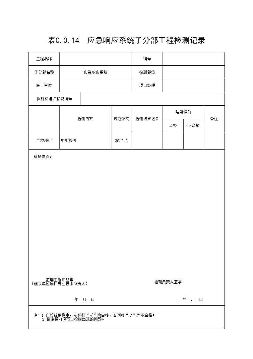 表格名称:表C.0.14 应急响应系统子分部工程检测记录