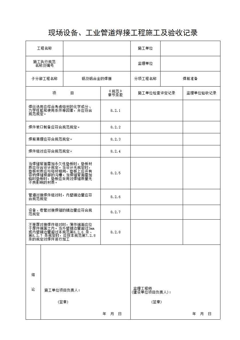表格名称:铝及铝合金的焊接(焊前准备)