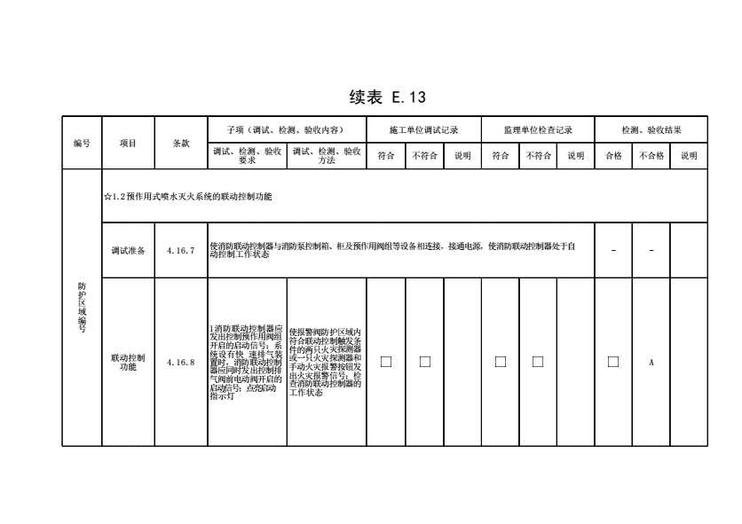 表格名称:表E.13 自动喷水灭火系统调试、检测、验收记录(续表9)