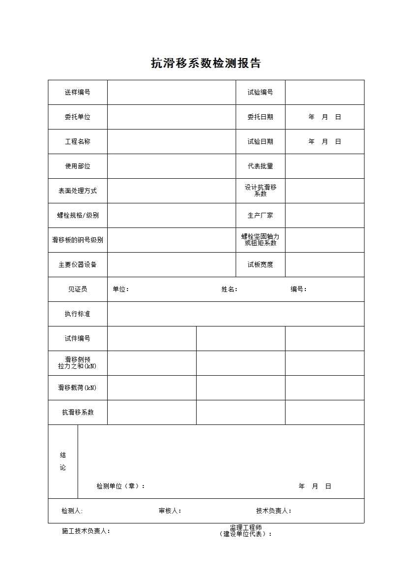 表格名称:抗滑移系数检测报告