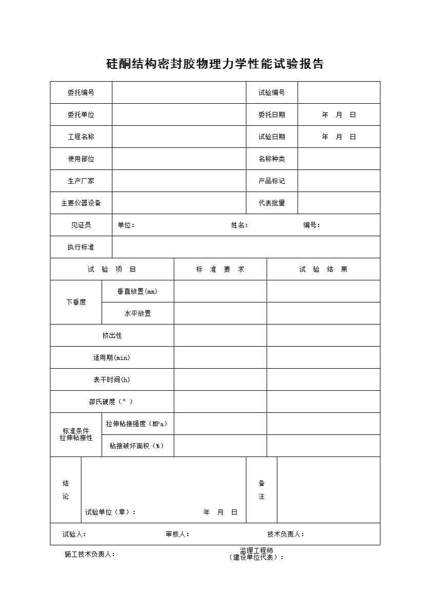 表格名称:硅酮结构密封胶物理力学性能试验报告