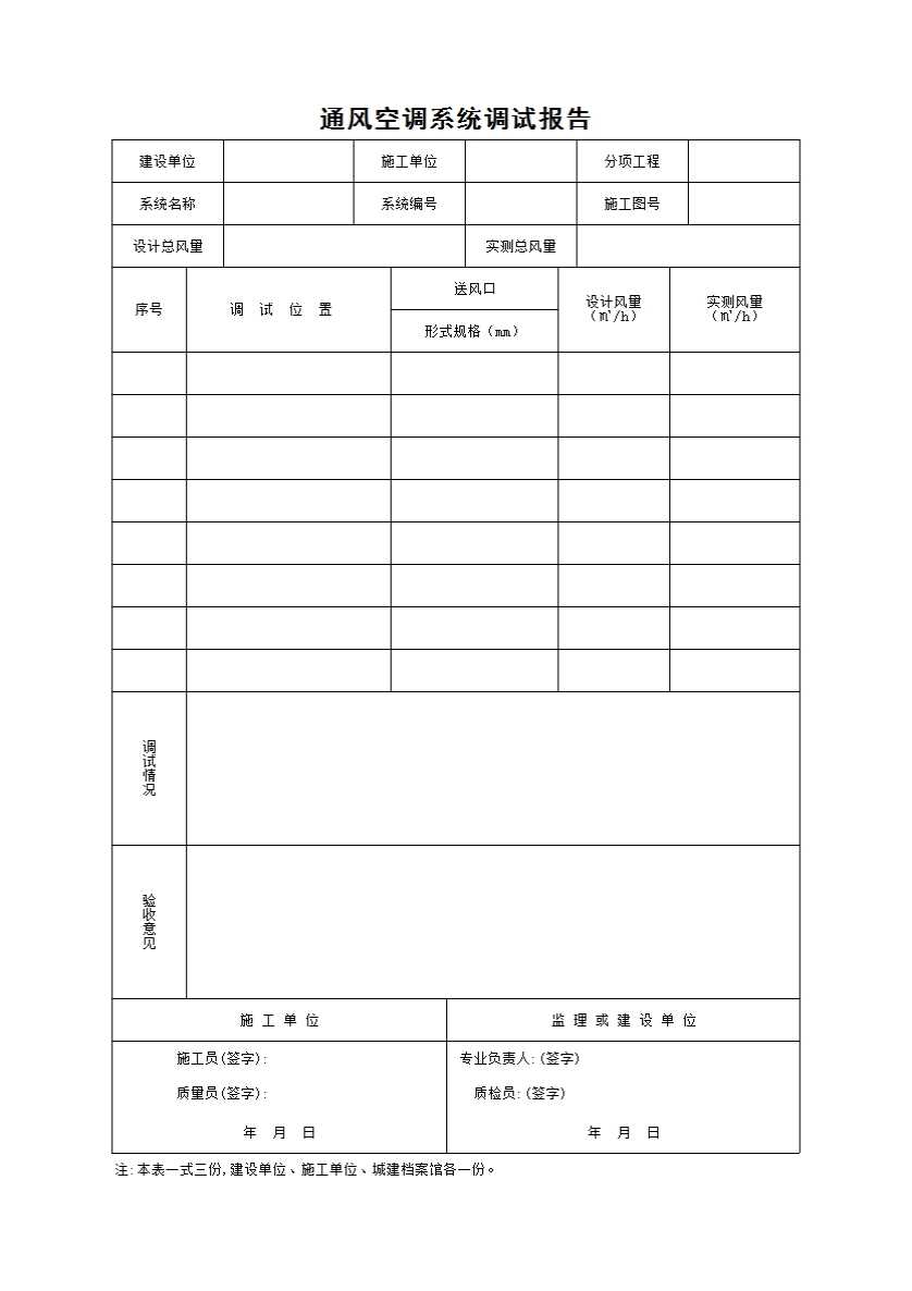 表格名称:通风空调系统调试报告