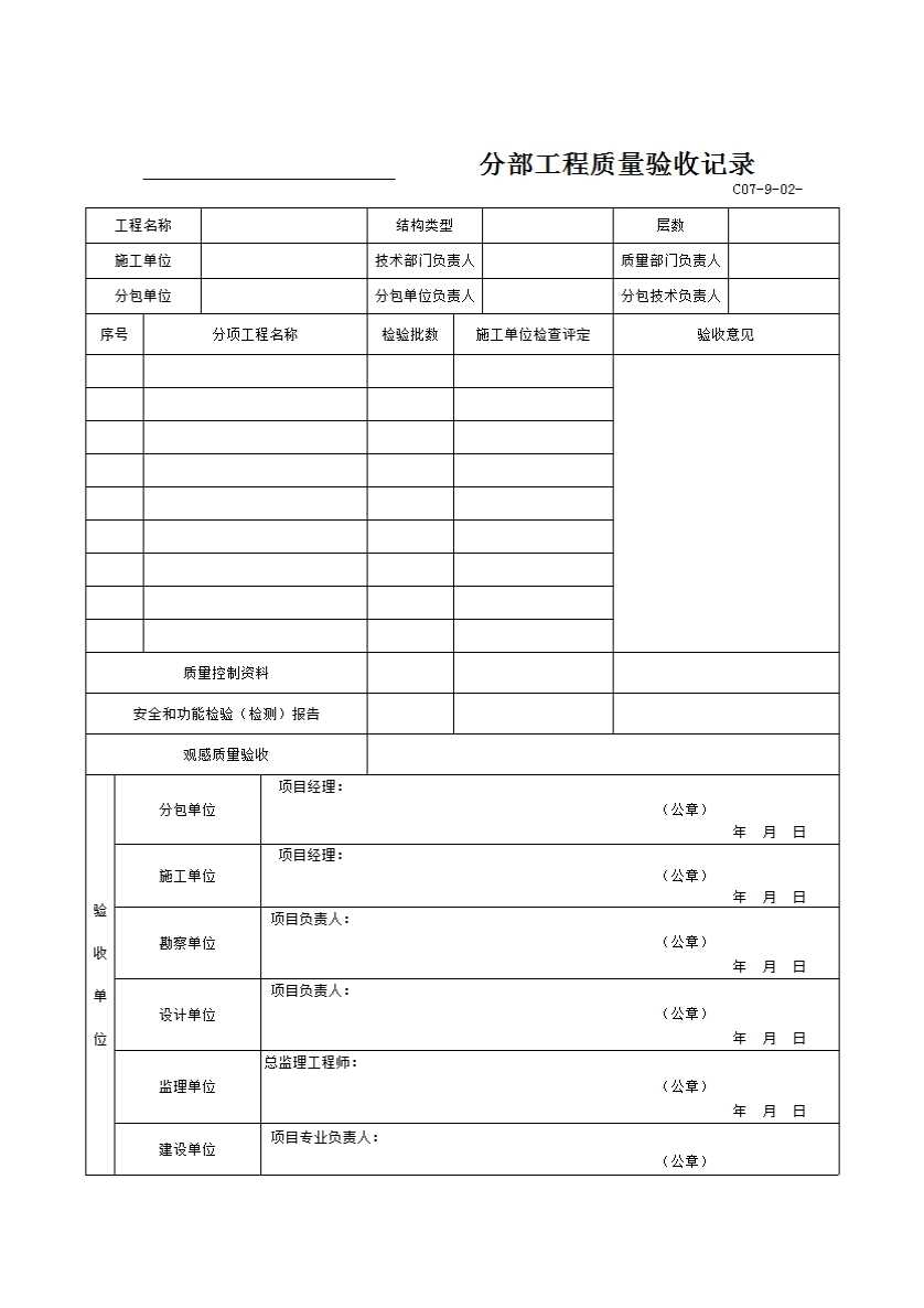 单位(子单位)工程质量竣工验收记录