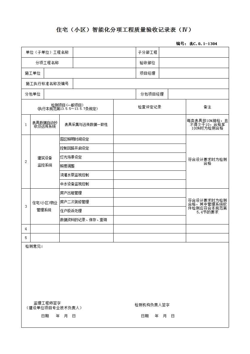 表格名称:住宅(小区)智能化分项工程质量验收记录表(Ⅳ)