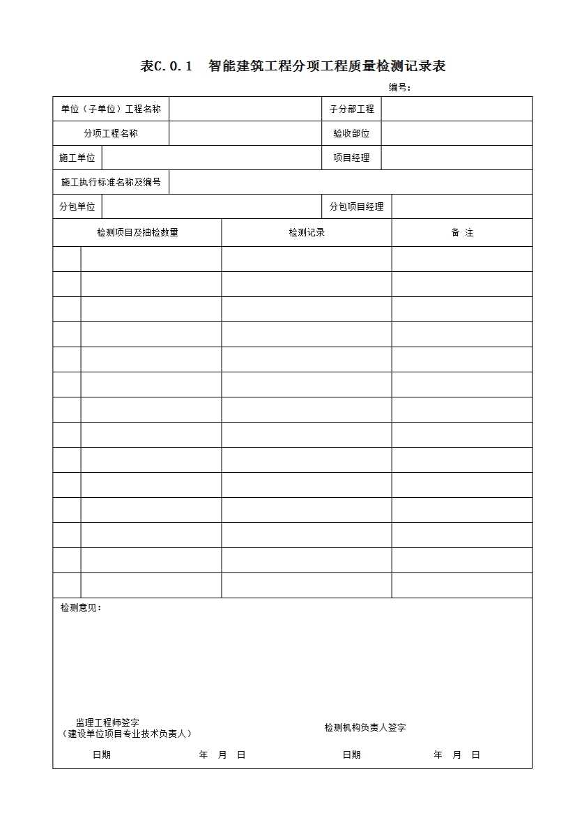 C-0-1智能建筑工程分项工程质量检测记录表