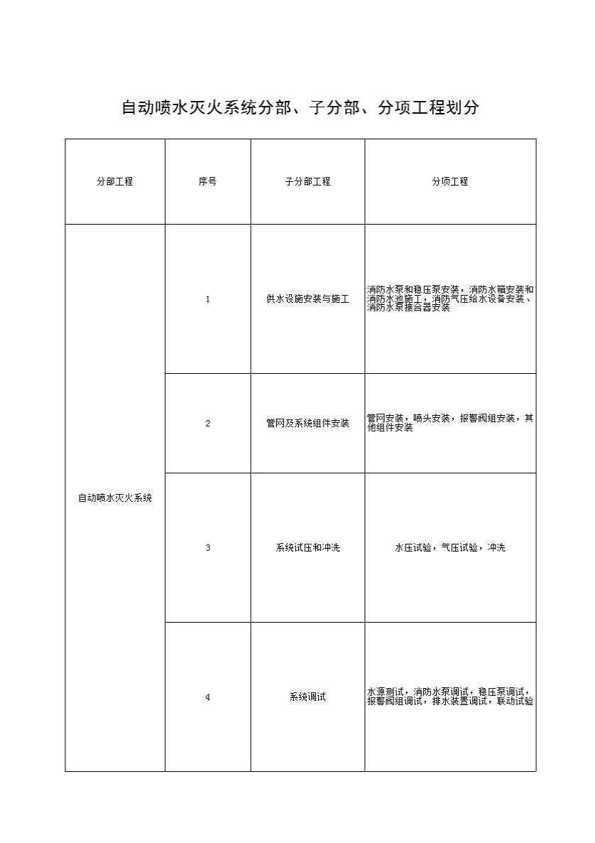 表格名称:01自动喷水灭火系统分部、子分部、分项工程划分