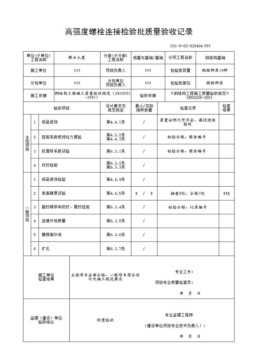 C01-9-02-020404高强度螺栓连接检验批质量验收记录