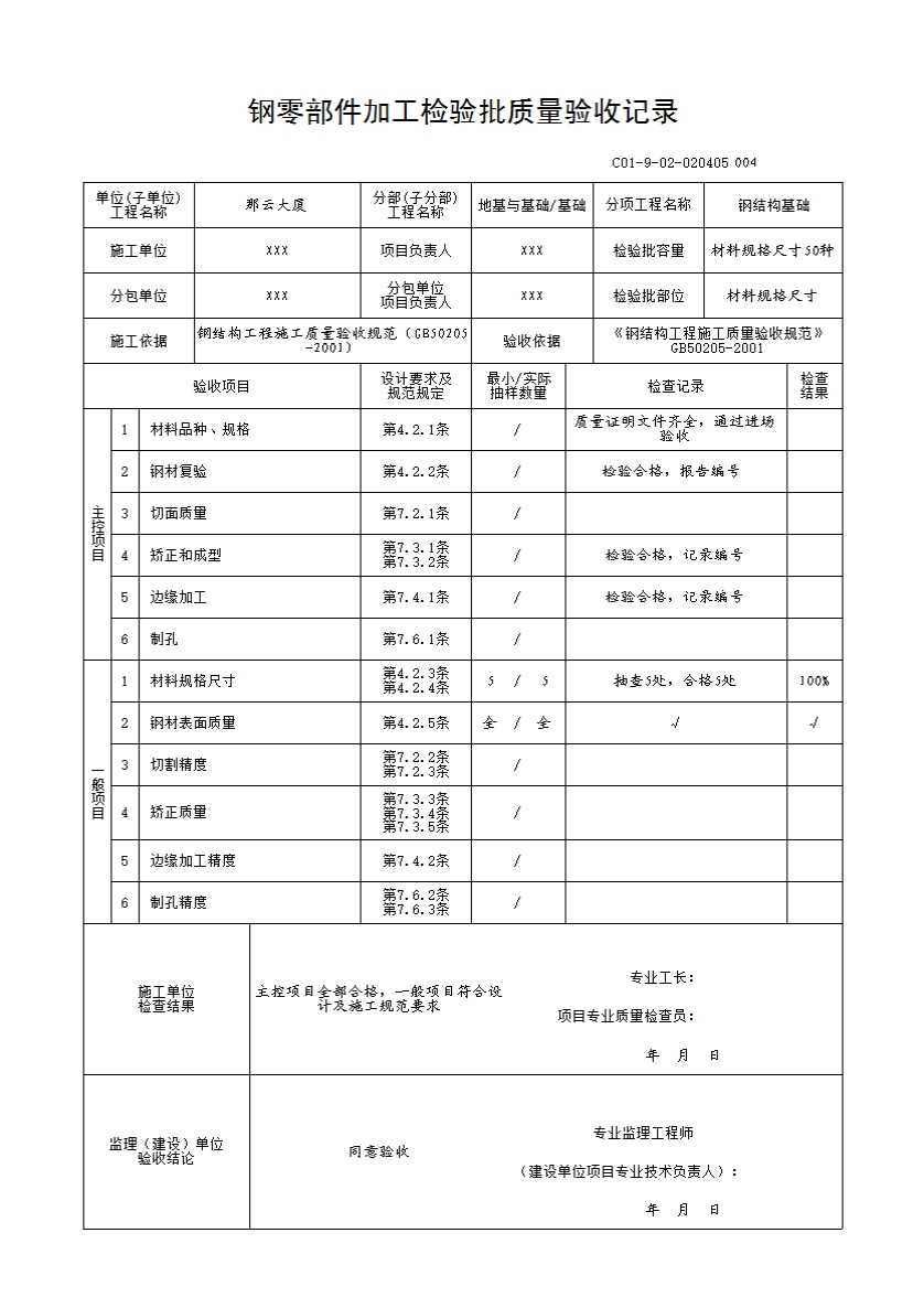 本表适用于钢结构制作及安装中钢零件及钢部件加工的质量验收。