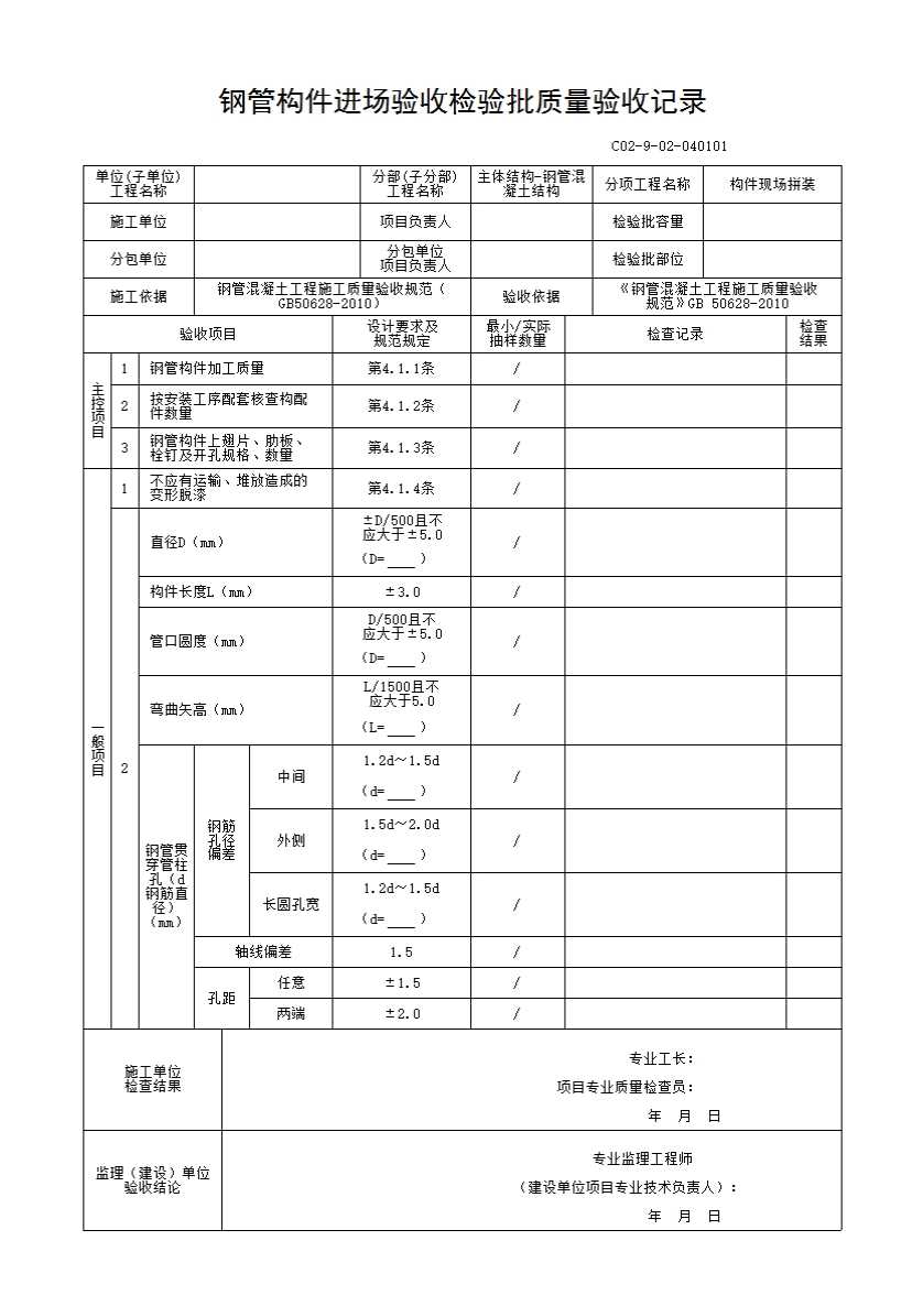 C02-9-02-040101钢管构件进场验收检验批质量验收记录