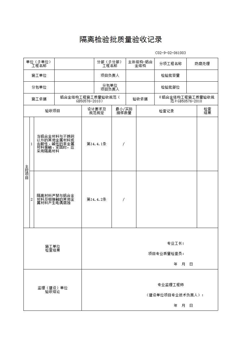 14.4.1 当铝合金材料与不锈钢以外的其他金属材料或含酸性、碱性的非金属材料接触、紧固时,应采用隔离材料。