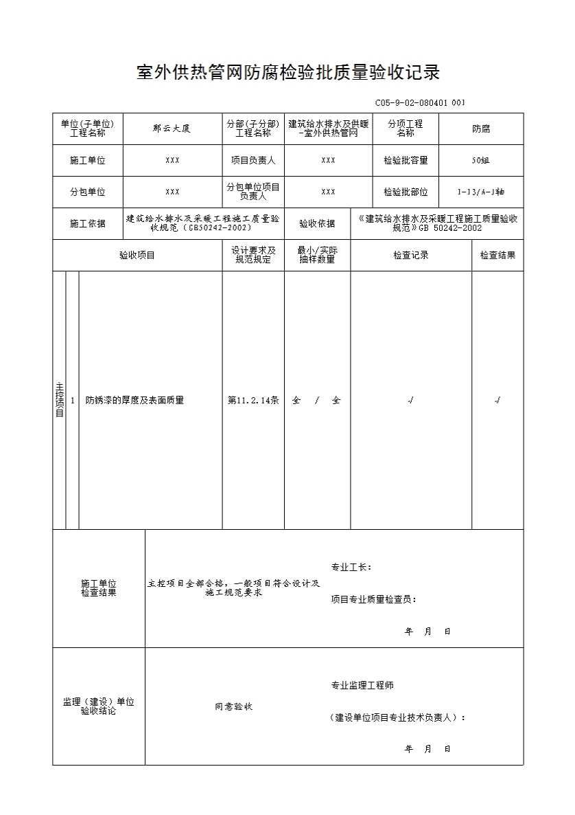 C05-9-02-080401室外供热管网防腐检验批质量验收记录