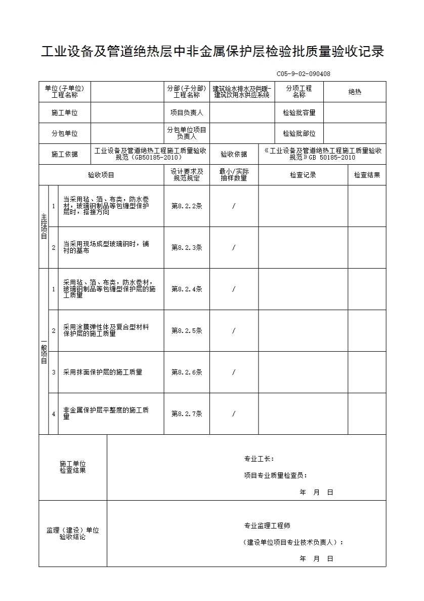 C05-9-02-090408工业设备及管道绝热层中非金属保护层检验批质量验收记录
