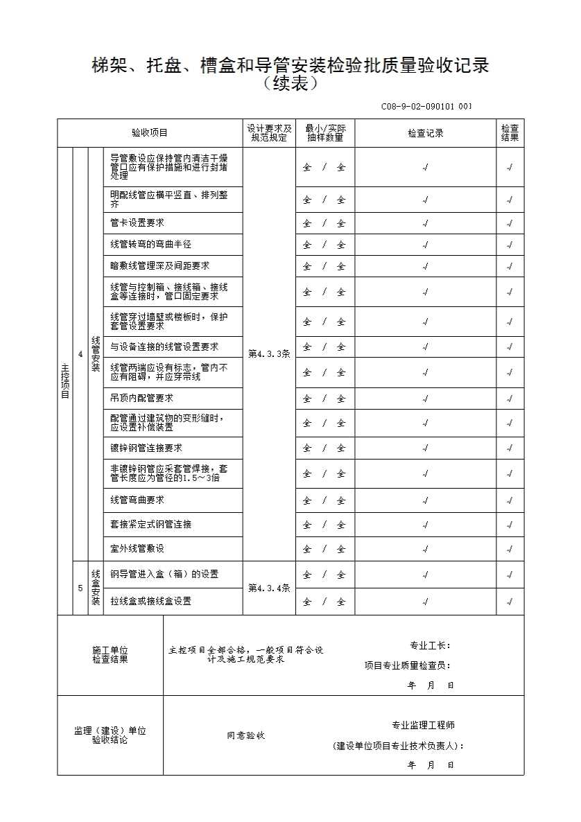 C08-9-02-090101梯架、托盘、槽盒和导管安装检验批质量验收记录