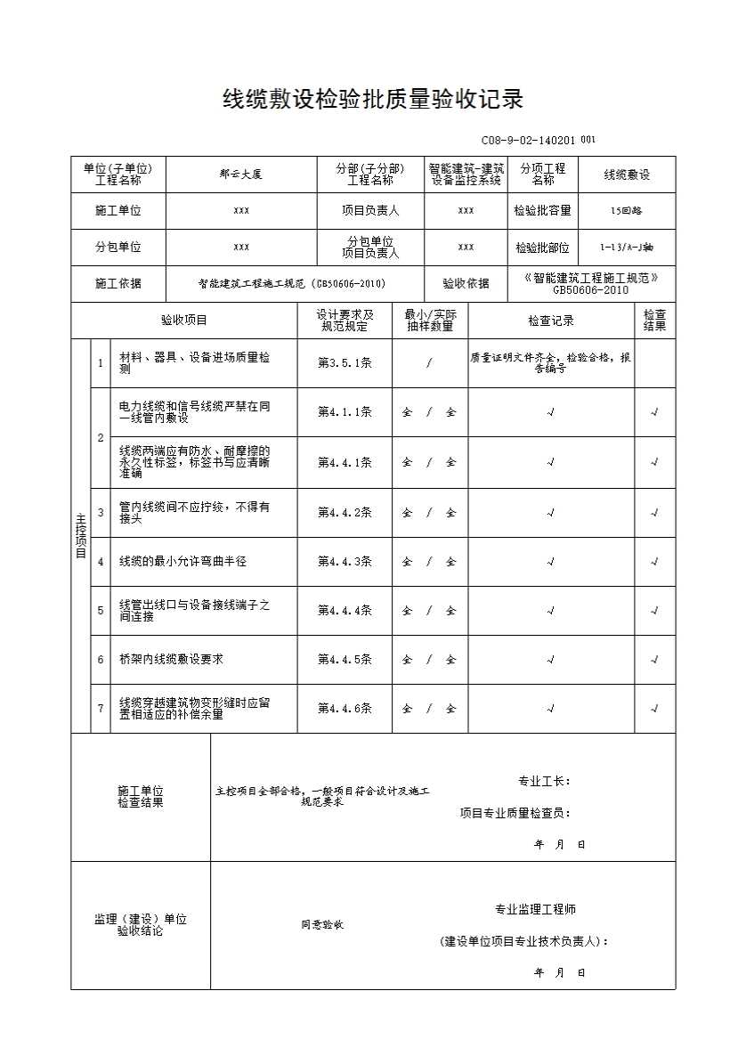 C08-9-02-140201线缆敷设检验批质量验收记录