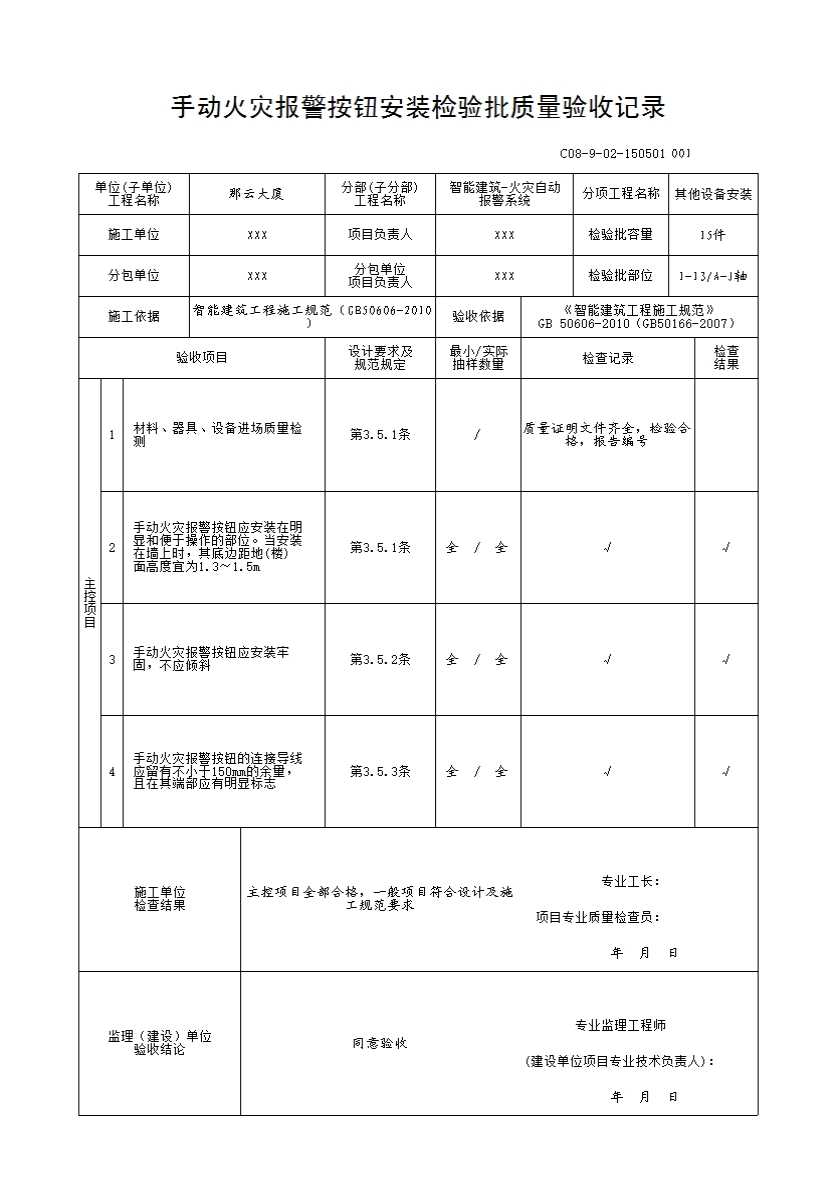 C08-9-02-150501手动火灾报警按钮安装检验批质量验收记录