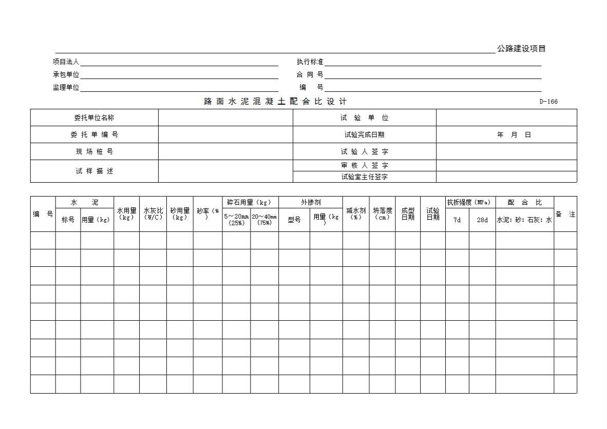 表格名称:D-166 路面水泥混凝土配合比设计