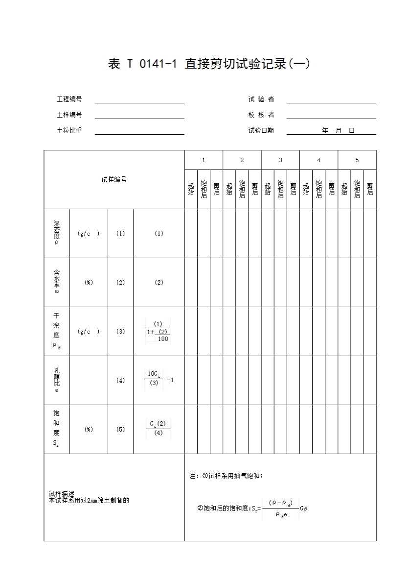 表格名称:表T0141-1 直接剪切试验记录(一)