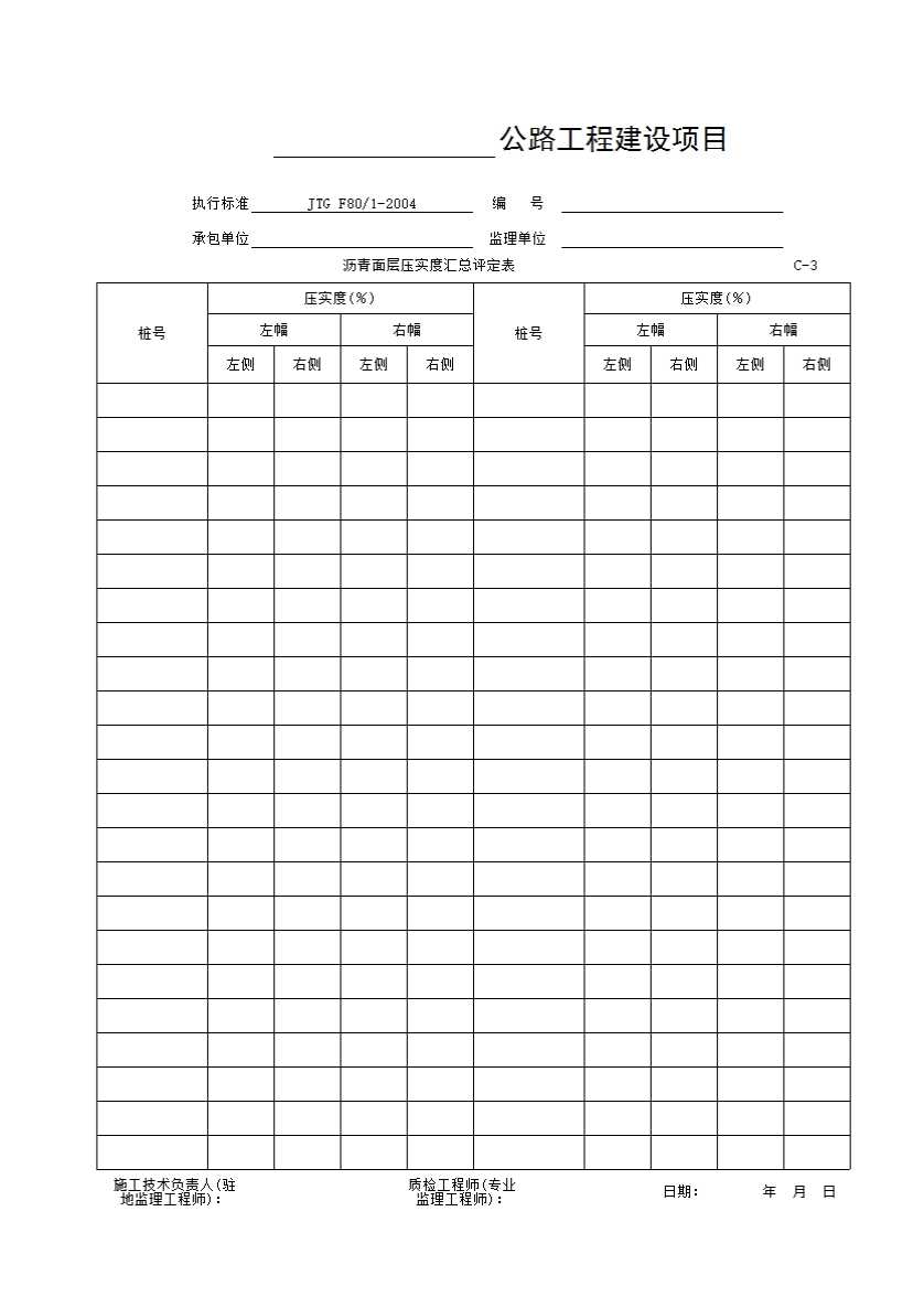 表格名称:C-3表 沥青面层压实度汇总评定表