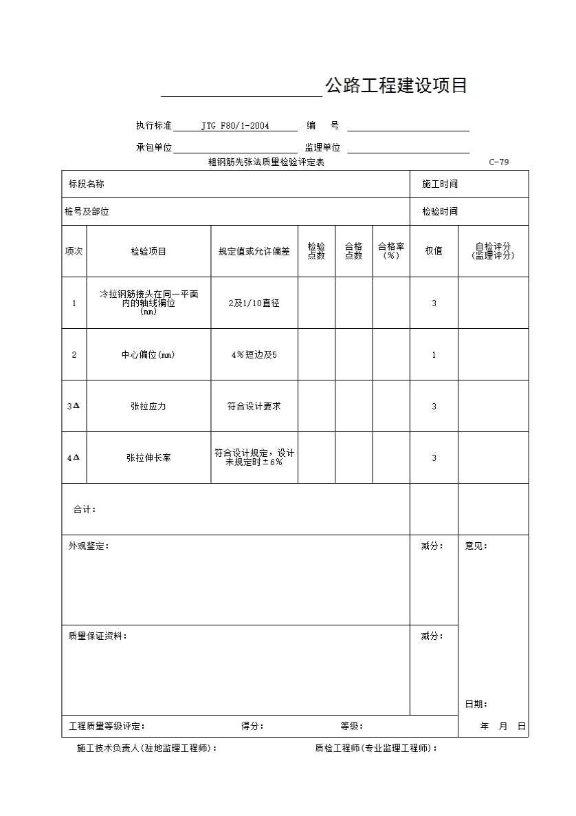 表格名称:C-79表 粗钢筋先张法质量检验评定表