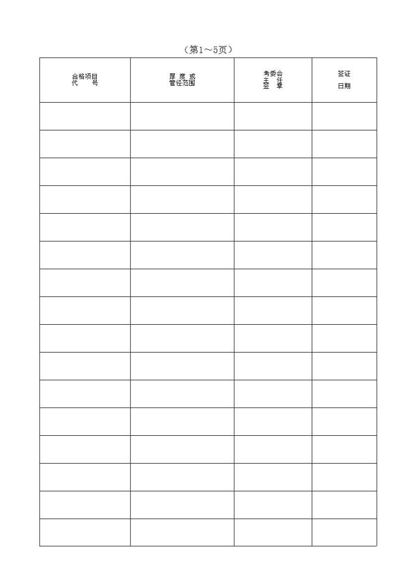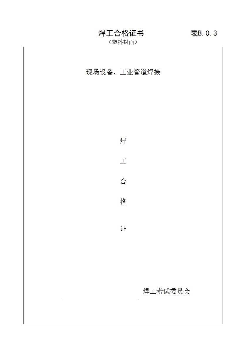 表格名称:焊工合格证书
