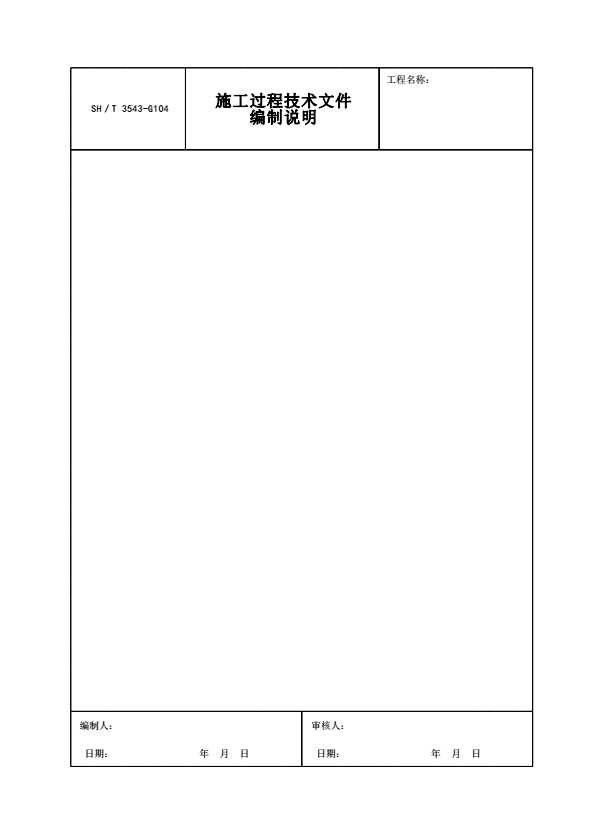 表格名称:SH/T 3543-G104 施工过程技术文件编制说明