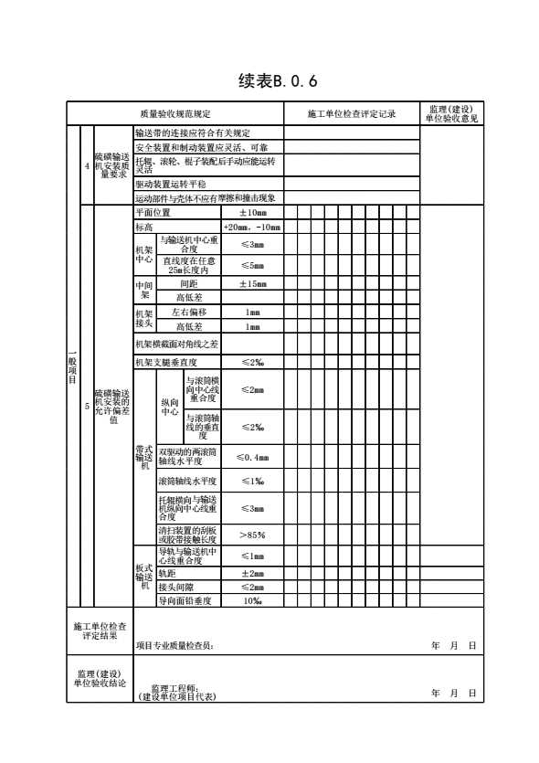 表格名称:表B.0.6 硫磺输送机安装检验批质置验收记录