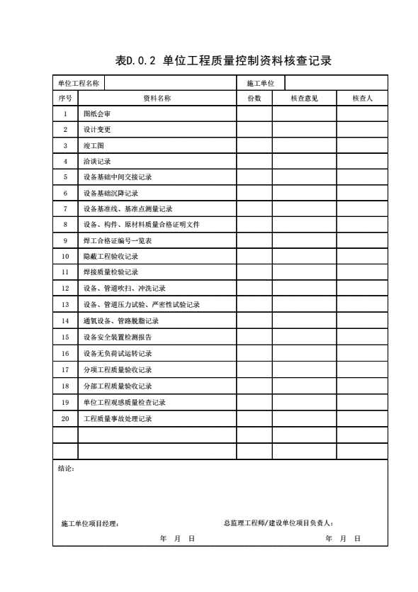 表格名称:D.0.2 单位工程质量控制资料核查记录