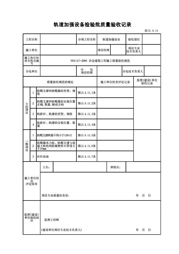 表格名称:表13.4.11 轨道加强设备检验批质量验收记录