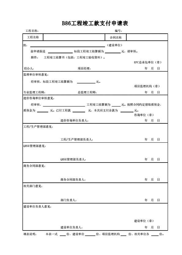 B86工程竣工款支付申请表