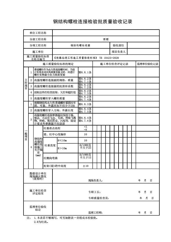 表格名称:钢结构螺栓连接检验批质量验收记录