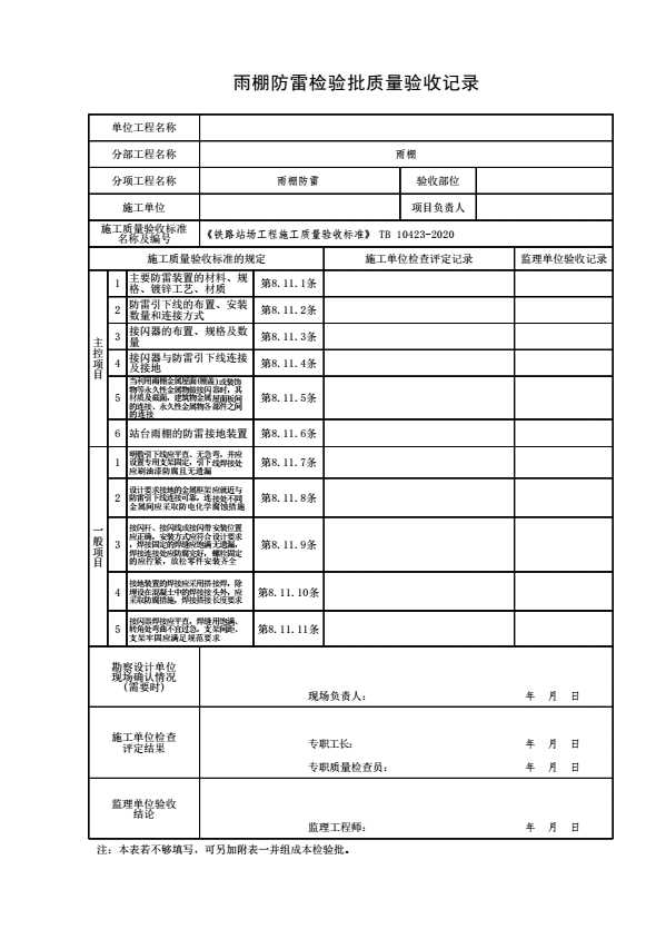 雨棚防雷检验批质量验收记录